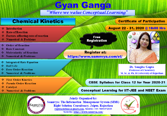 About Event: Join and Boost your Understanding on "CHEMICAL KINETICS" with most experienced faculty of Chemistry. Focus on Class 12th Syllabus of CBSE, JEE, NEET and other exams.
