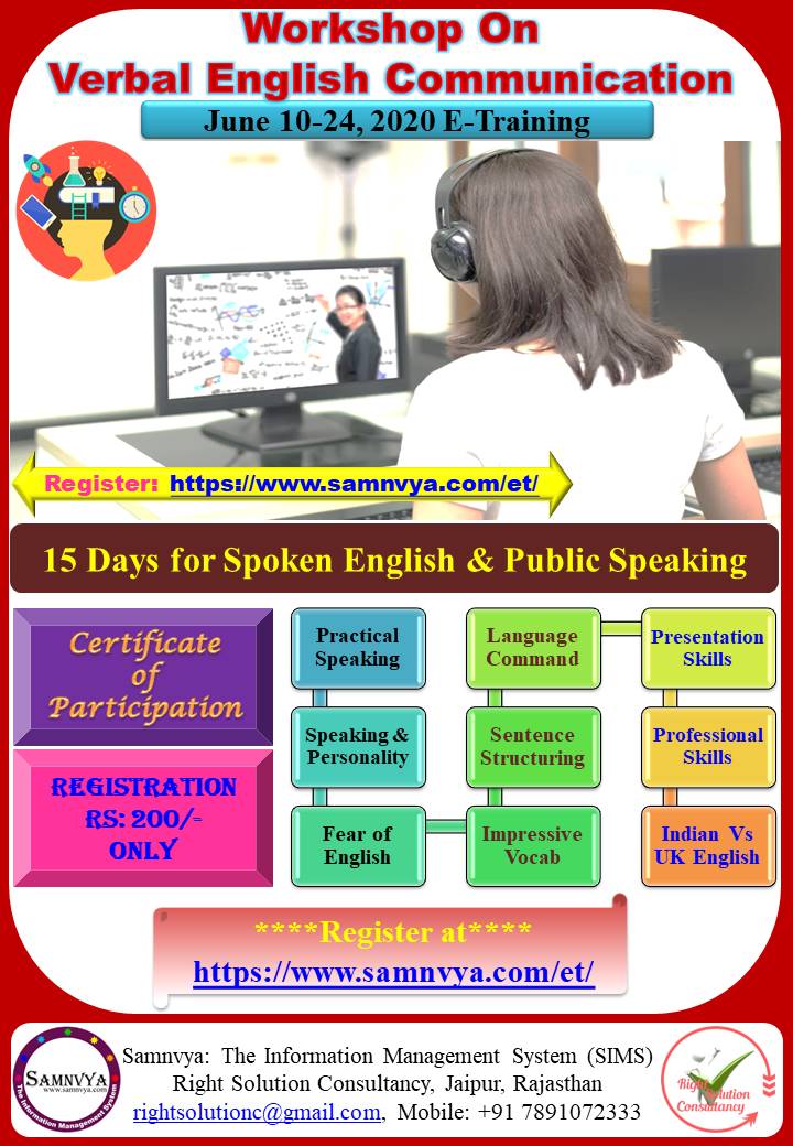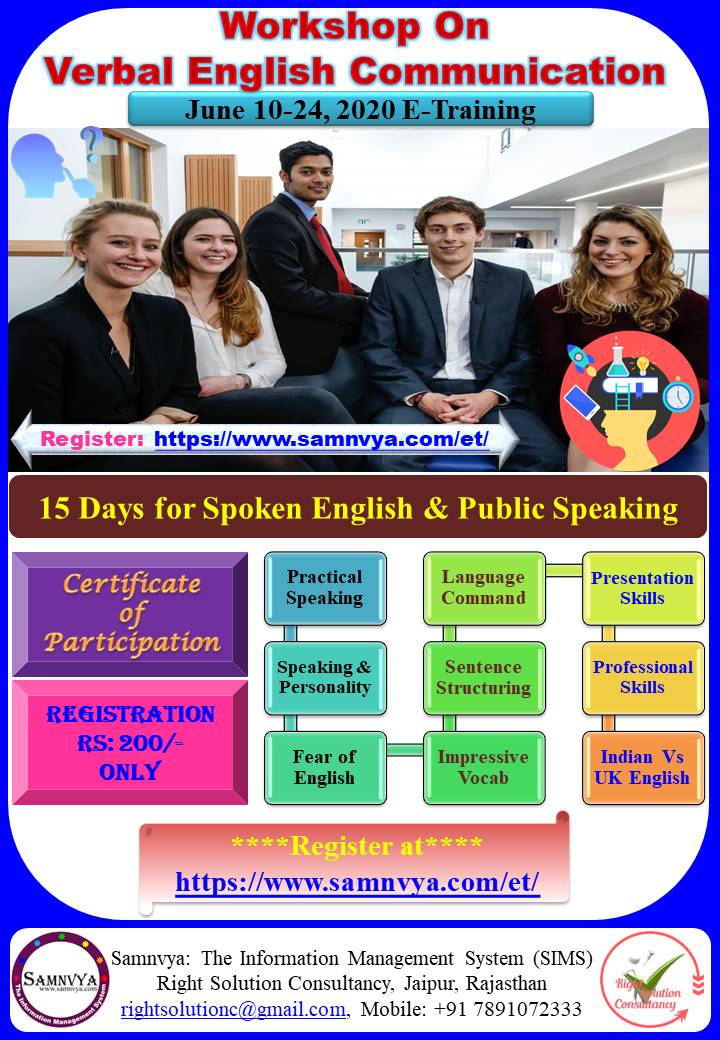 About Event: Practical Speaking, Speaking & Personality, Fear of English, Language Command, Sentence Structuring, Impressive Vocab, Presentation Skills, Professional Skills, Indian Vs UK English.